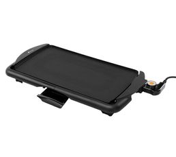 Grande surface de cuisson Indicateur thermo-spot qui indique que la plaque est à la bonne température Thermostat réglable et amovible Puissance en Watts : 2000 W Surface de cuisson : 47 x 24,5 cm Thermostat : réglable et amovible Revêtement : anti-adhésif Compatible lave-vaisselle : Après retrait du thermostat amovible, la plancha se glisse dans le lave-vaisselle Coloris : Noir Dispo pcs détachées donnée fournisseur : 10 ans Garantie : 2 ans , Pièces , Main d'oeuvre |
